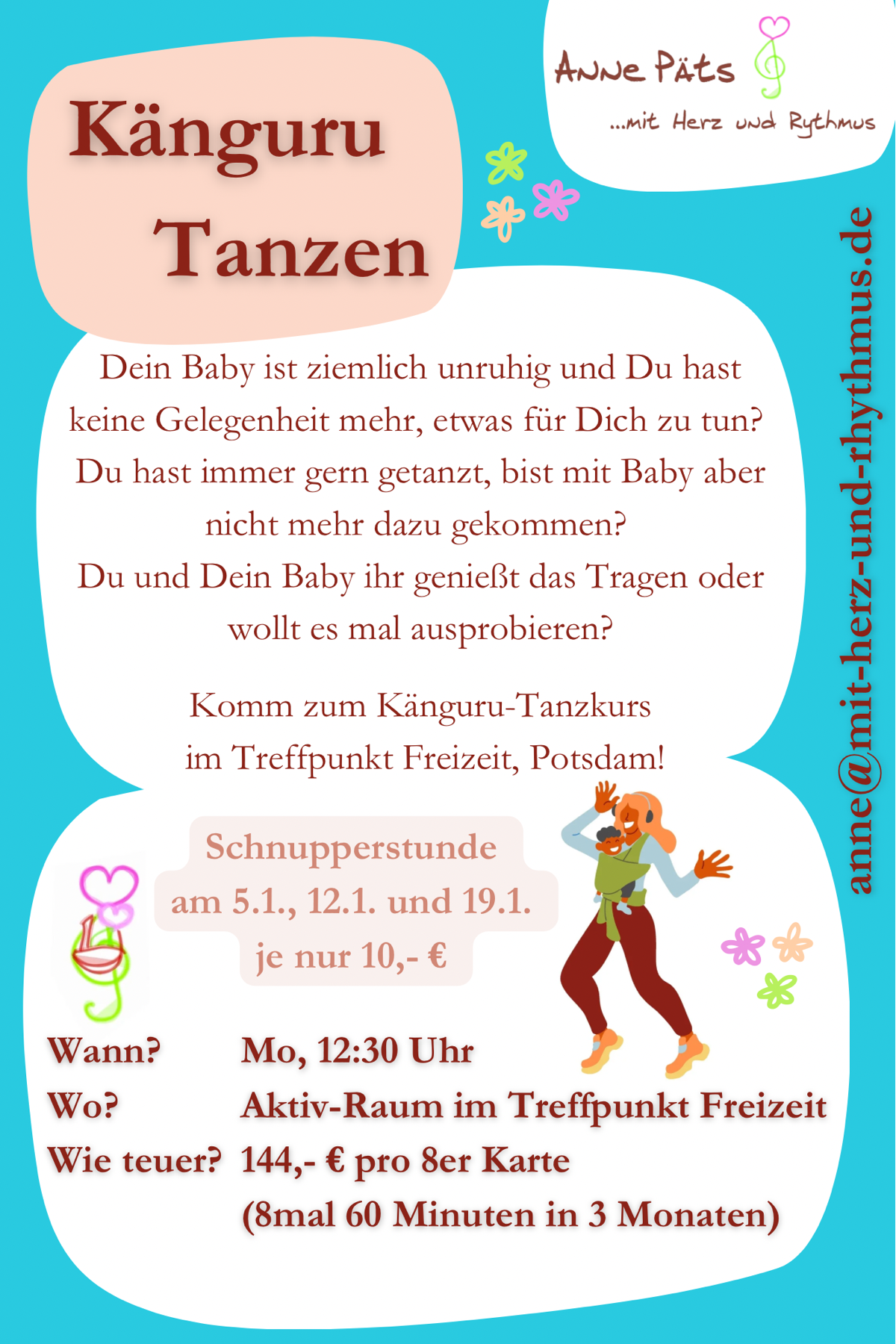 Leben, Wärme und Bewegung. In der täglichen Betreuung von Kindern als Tagesmutter, bei den Familiennachmittagen, in meinen Workshops für Fachpersonal, beim Tanzen und beim Tragen von Babys. Und nun: Viel Spaß! Eure Anne